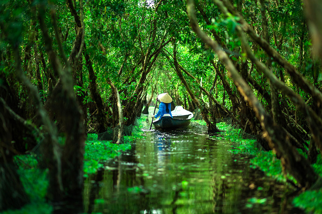 Le Delta du Mékong, situé dans le sud du Vietnam, est un véritable réseau de rivières, de canaux, et d’îles. Ce labyrinthe aquatique forme un écosystème unique qui est non seulement la source principale de production agricole du Vietnam, mais aussi un havre de biodiversité impressionnant. Partez à l’aventure en bateau à travers ses canaux serpentins et découvrez une région où le temps semble s’être arrêté. Le Delta, c’est aussi un monde parallèle où la vie s’organise autour de l’eau, des marchés flottants aux villages baignés par les rivières.