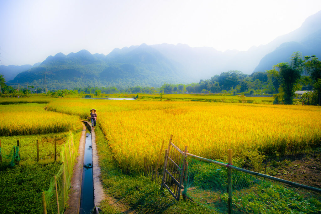 Mai Chau au Vietnam est le plan parfait si vous voulez du vrai, de la nature et des rencontres. C’est à quelques heures de Hanoï, au cœur des montagnes du nord. La vallée est très tranquille, avec des rizières à perte de vue, des villages typiques et des cultures différentes. Oubliez le stress de la ville, là vous vous reconnectez à l’essentiel : vélo, randonnées tranquilles et immersion dans la vie locale.